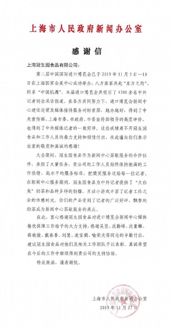 喜报丨上海冠生园食品有限公司市场部获得“上海市模范集体”称号