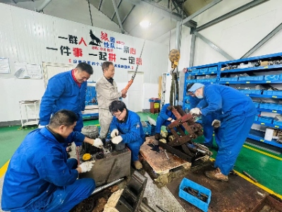 但是这种进口配件都是国外整体定制,国内没有,也从未有人拆解过,在没有详细图纸说明的情况下,重新组装起来困难重重。但是他们没有放弃,迅速分工协作,有的挑选2台报废的变速齿轮箱可以用的零件,有的查看拆解时的记录进行设备图纸还原,有的通过经验对零件进行辨别安装,仔细测算偏差……浓浓的茶叶水、一包包被拆开的饼干,陪伴着整个机修团队熬过了一个晚上。